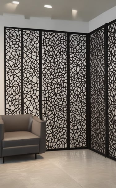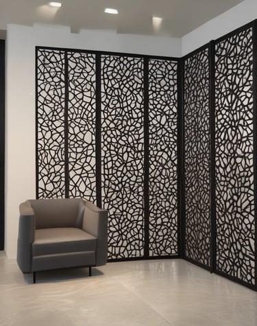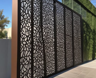 Metal Screens made of steel that is laser cut with precision to create some very unique patterns. Once cut, a powder coat is applied to each screen to give the panel a clean, finished look.